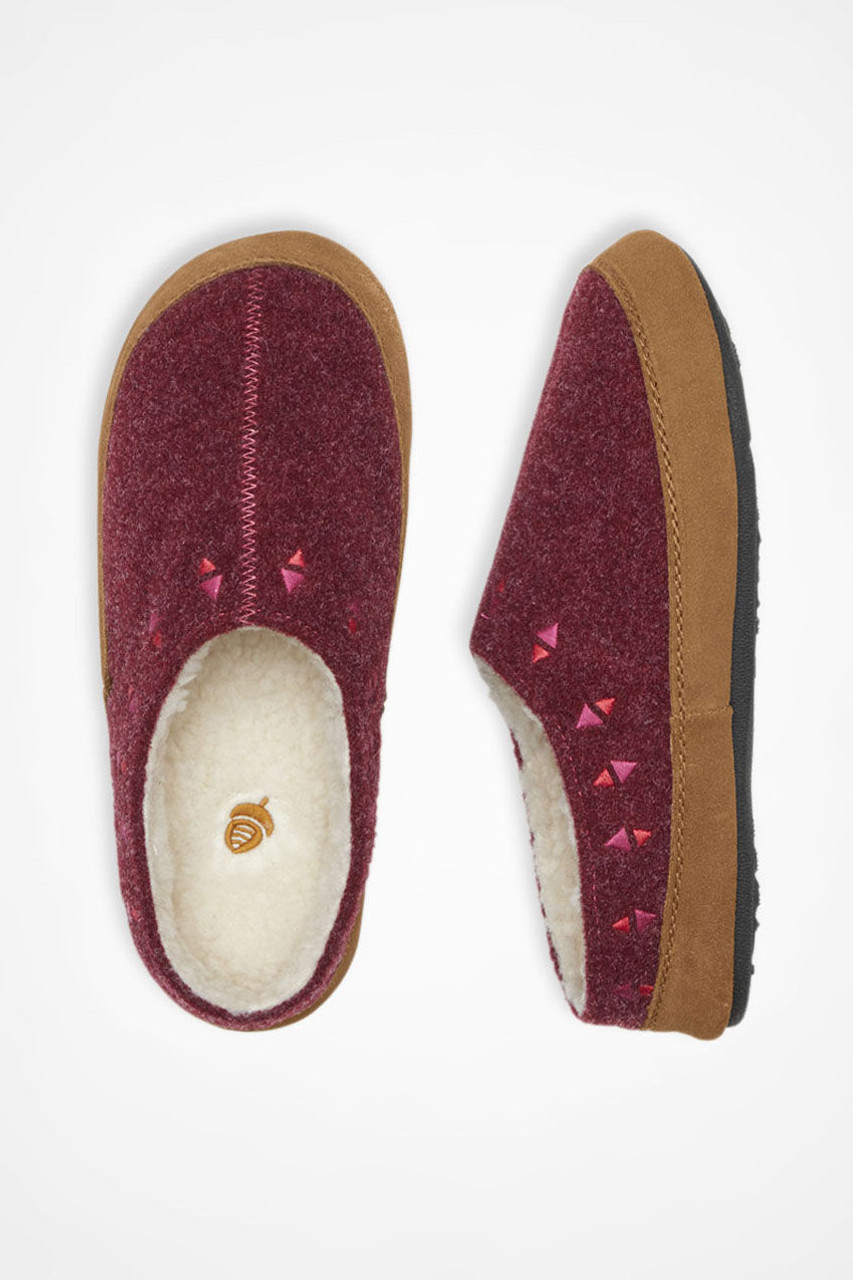 Hand-stitched faux boiled wool with a soft Berber fleece lining and suede sidewall