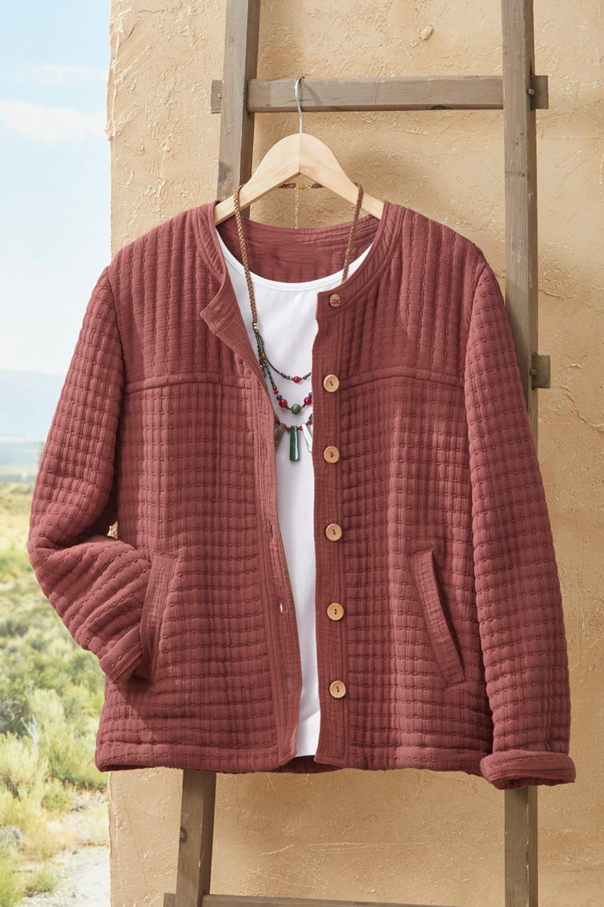 Fresh artistry in a favorite fabric. Our double gauze jacket is lightly quilted and vintage-dyed for wonderful depth of color and texture. Easy and unstructured.